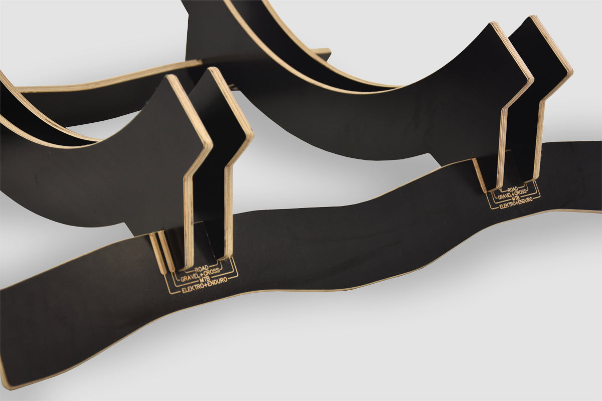 - Made by us: The bike stand is manufactured directly in our workshop from 10 mm thick plywood. If needed, we can also offer custom-made stands. A version with your own logo or text is available upon request.