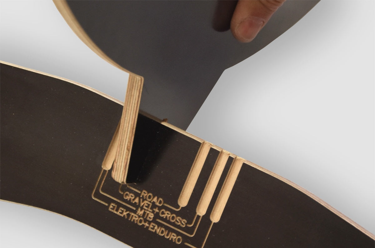 - Naša izdelava: Stojalo za kolo izdelujemo neposredno v naši delavnici iz 10 mm debele vezane plošče. Po potrebi ponujamo tudi stojala po meri. Na zahtevo je možna različica z lastnim logotipom ali napisom.