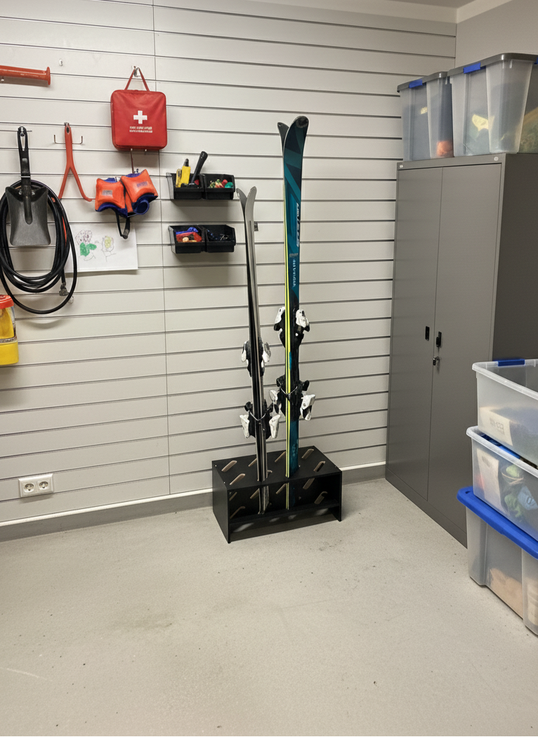 - Spacious: The ski rack is designed for 8 pairs of skis. The slot dimensions are 13 x 2.7 cm. Larger slots can also be made upon request. We recommend measuring your skis accurately. For wider skis, we can adjust the slots to your specifications.