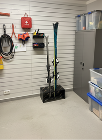 The ski racks are delivered ready to use and have side openings that allow them to be connected into an "endless" row. It is also possible to connect the ski rack with a wooden rack for cross-country skis.